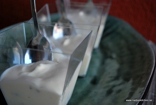 - Vispa sedan grädden fluffig i en annan bunke. Vänd ner den grekiska yoghurten i grädden.